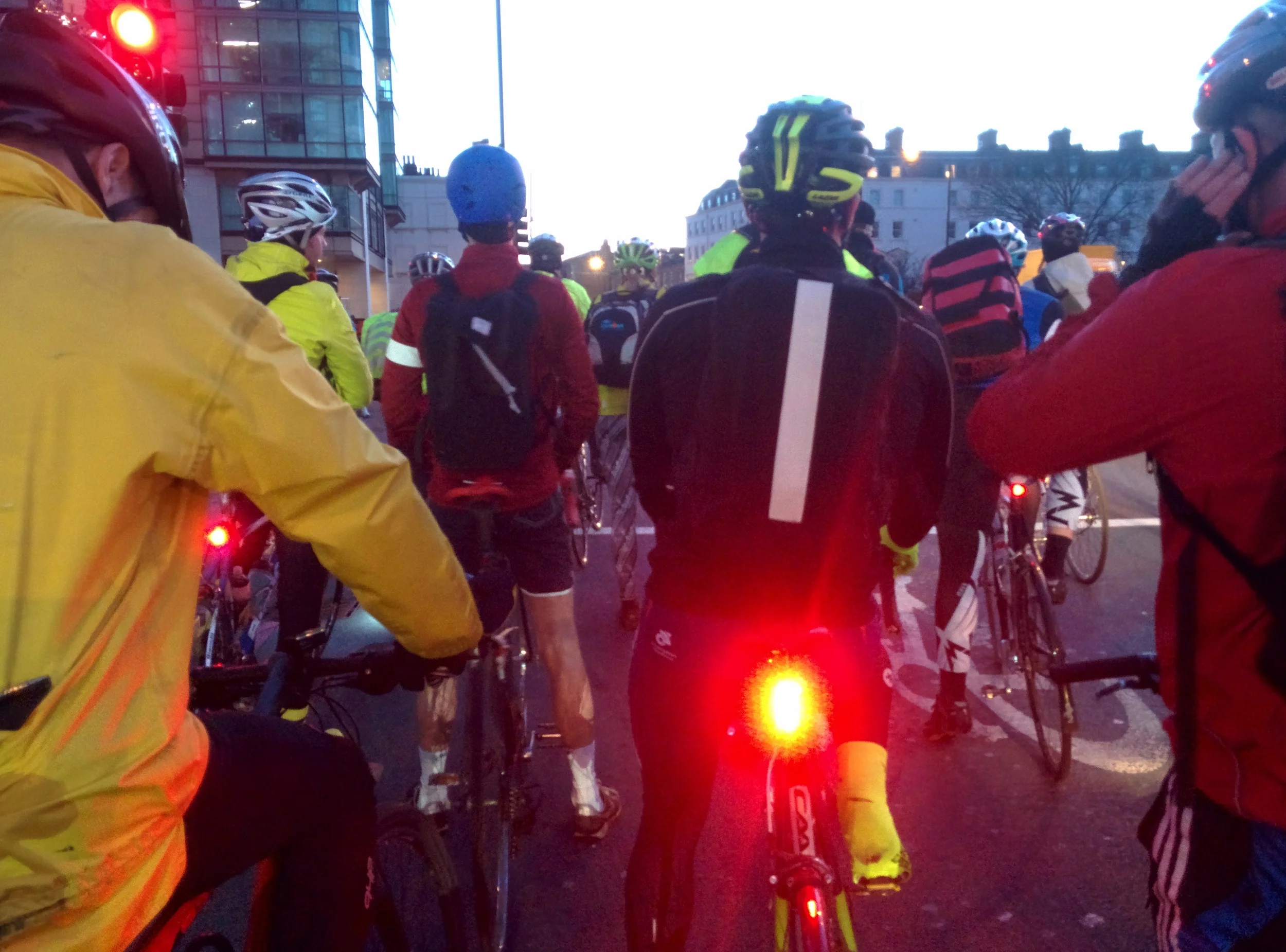 This mismatched bunch of riders, from the lycra-layered racers to the single-speed trundlers, both of which are categories I fall into, are joined by the Boris Bike beginners, the fashionistas on their upright machines and all sorts in between. Competition in the ranks is always silent, but ever present. The first pedal strokes departing a busy junction like Vauxhall Bridge always set the tone in the bunch, with some dropping like a stone to the back and others desperate to keep their wheel in front of the rider next to them. Those without mudguards cause widespread unspoken ire in wet weather, another trigger for trying to surge in front of the rider ahead, out of the trail of effluent spinning off their rear wheel. Garmin devices and bar-mounted phones are further evidence of the silent competition commuters engage in each day as they seek the top spots of the Strava leaderboards.